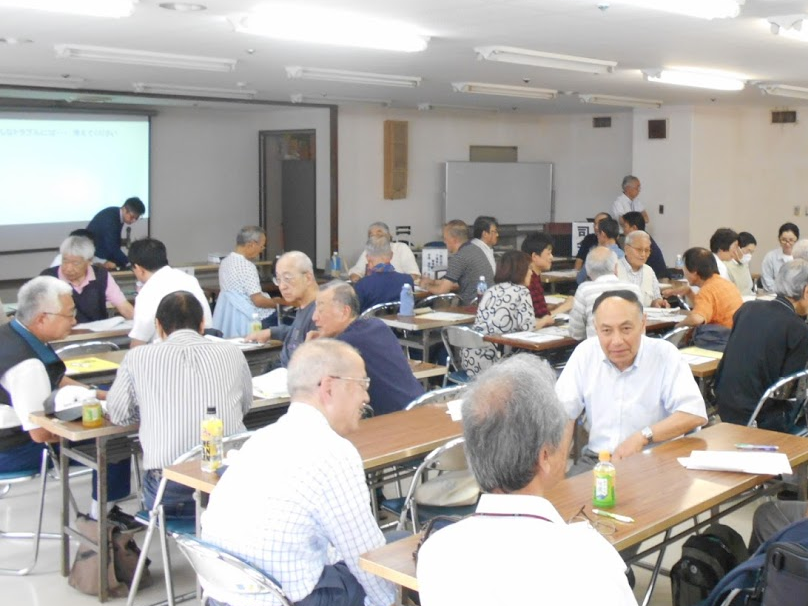 テーマは「新任役員の心得」(このところ同じです、が内容は刷新しています)10分ほどのミニワークを挟んで、管理組合の役員をやるなら「楽(らく)しよう」ではなく「楽しくやろう」ということ、「マンションの外に多くのネットワークを持とう」ということ、そして「管理は素人でも、生活とマンションの所有には素人と言って逃げることは許されない」と…。