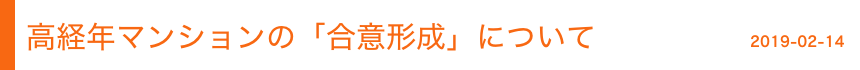 高経年で居住者が高齢化したマンションの今後の「持続」というか「継続性」の問題が次第に重くなっています。