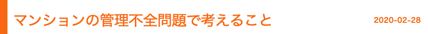 「管理不全」って、特に建物設備のハード面の現象じゃなく、そのマンションに住んでいる人たち自身が、自分たちの住環境についてあるいは、その将来について、真剣に取組めずに、結果として「何も決められずに」ズルズルと時間がたったマンションなのじゃないかな、と。