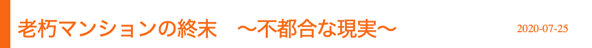 それも間違いなく、多くの高齢の区分所有者の皆さんが生きておられるうちに…。最悪は、危険建物として行政の行政代執行による撤去。区分所有者の方々は結果路頭に迷われることにも…。